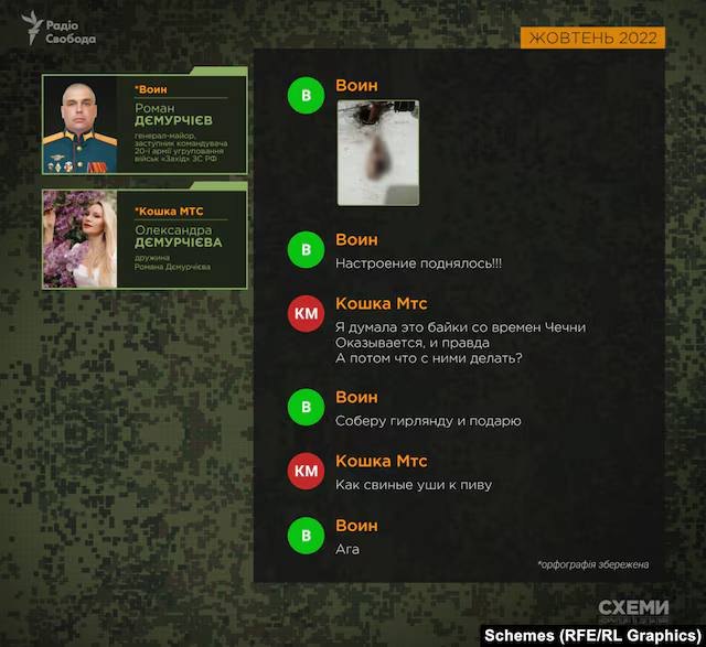 Замкомандующего 20-й армии рф Роман Демурчиев в личной переписке описывает пытки, внесудебные казни и надругательства над телами украинских военных.