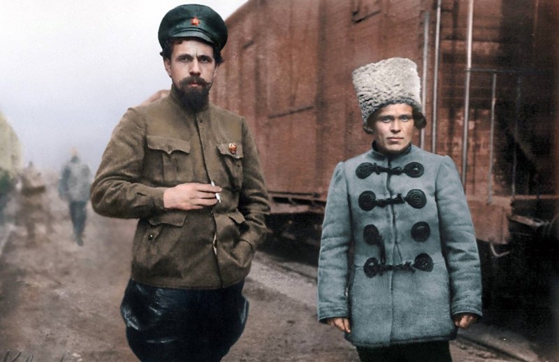 На снимке: Дыбенко и Махно.