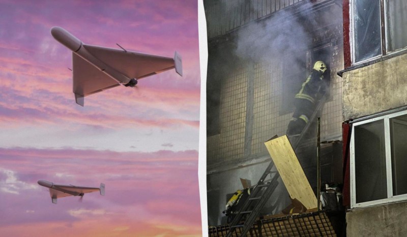 «Спасатели ликвидируют последствия удара дронами в Деснянском районе, где произошли пожары.На одном из мест в результате попадания БпЛА загорелся девятиэтажный жилой дом — с верхних этажей удалось спасти 13 человек», — говорится в публикации в Telegram.