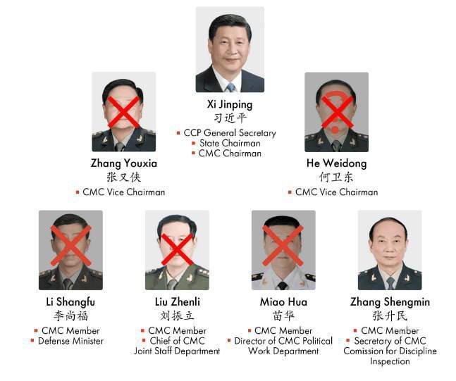 Задержан генерал Чжан Юся — ближайший соратник лидера Китая, являющегося вторым человеком в командной вертикали Народно-освободительной армии. Он якобы подозревается в передаче США конфиденциальной информации относительно китайской ядерной программы и злоупотреблении властью, включая получении взяток за продвижение чиновников,