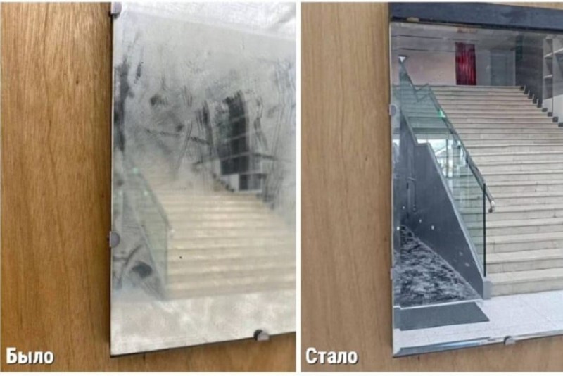 Однако во время вечернего обхода сотрудник уборки решил, что зеркало просто стало грязным, и тщательно вытер пыль туалетной бумагой.