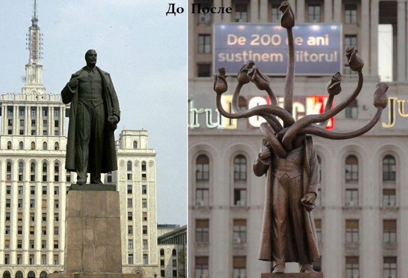 Памятник Ленину в Бухаресте превратили в многоголовую гидру