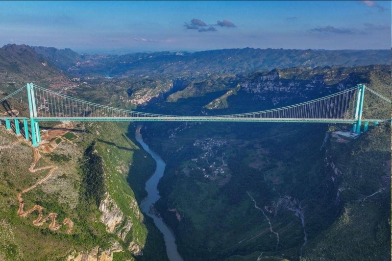 Он проложен через ущелье в провинции Гуйчжоу и поднимается на 625 метров над рекой Бейпан — это выше, чем 200-этажный небоскрёб и в девять раз выше знаменитых «Золотых ворот» в Сан-Франциско.