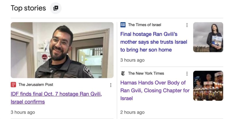 Прилагаю заголовок из NYT (который уже успели заменить, но в поиске он все еще остается прежним: «Хамас передал Израилю тело Рана Гвили, тем самым закрыв эту главу для Израиля», что является ложью).