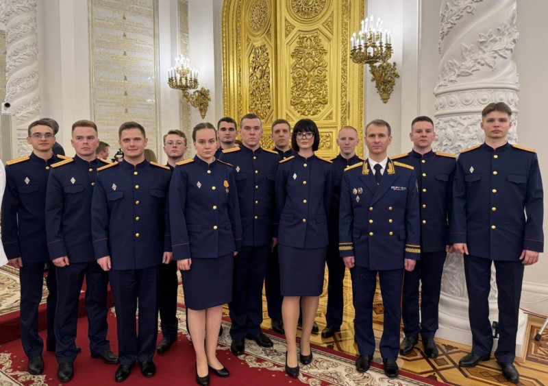 Ну собственно, вот, знакомьтесь: Наталья Саватеева, выпускница Московской академии Следственного комитета имени А.Я. Сухарева этого — 2025 года. В центре, в очках.