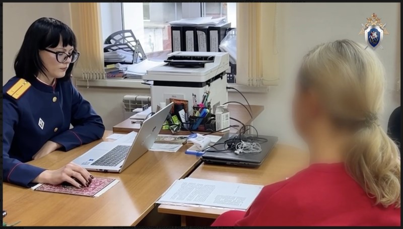 Это она — героиня рекламного ролика СК о задержании красноярской журналистки Светланы Хустик. Она ведет допрос только что обвиненной в тяжелом уголовном преступлении злодейки. А преступление будто бы состоит в том, что журналистка посмела в одной фразе упомянуть украинский город Умань, в котором российския ракета в апреле 2023 разрушила подъезд 9-этажного жилого дома и убила 24 человека.